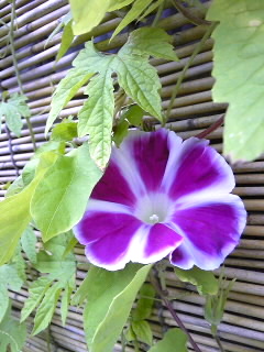 打ち水の雫を払う朝顔の笑み・・・