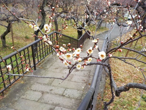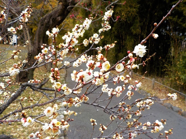 ちょうど一ヶ月前、府中郷土の森の蝋梅を観に行ったとき、既に多くの梅も咲いていました。